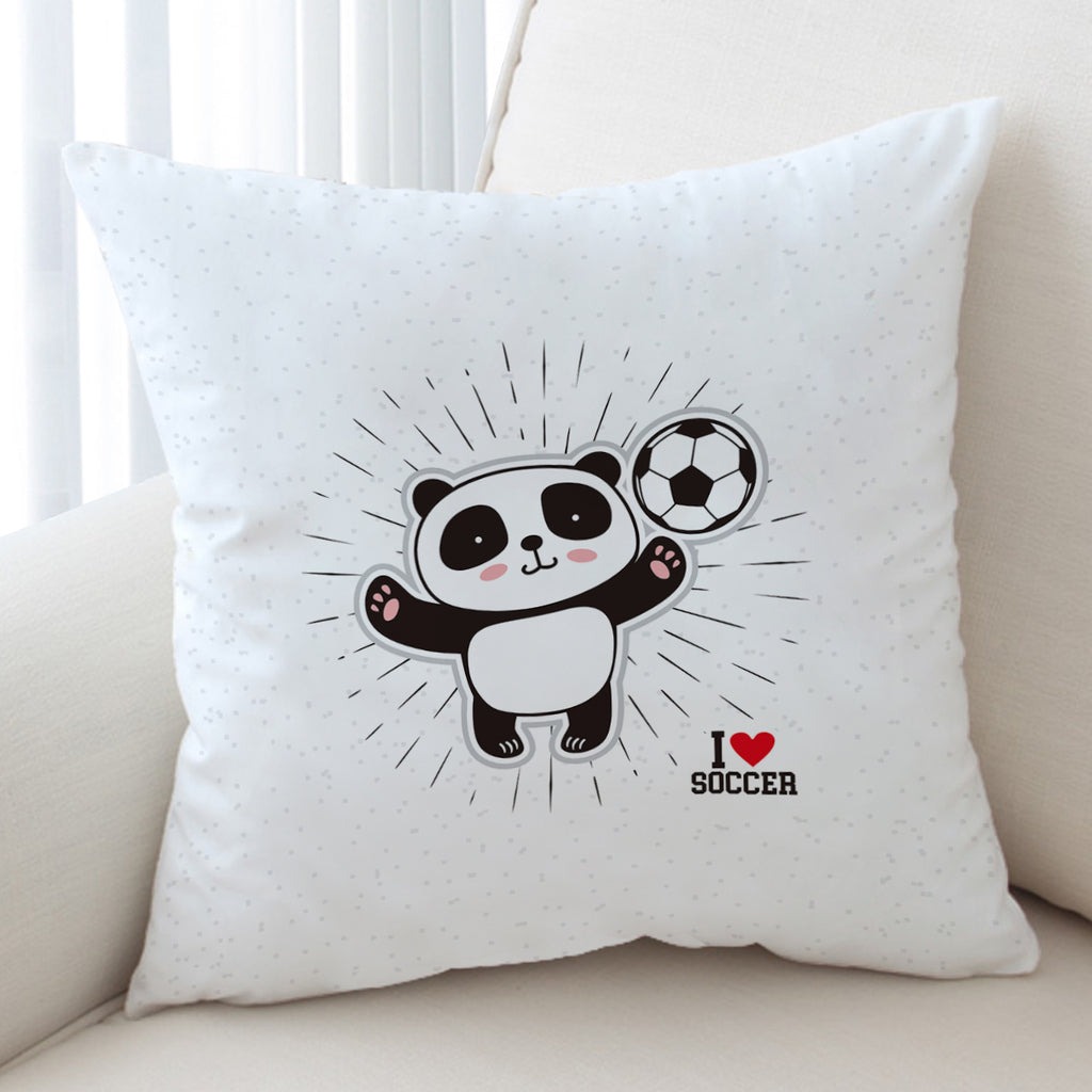 Cute Little Panda I Love Soccer Cushion Cover