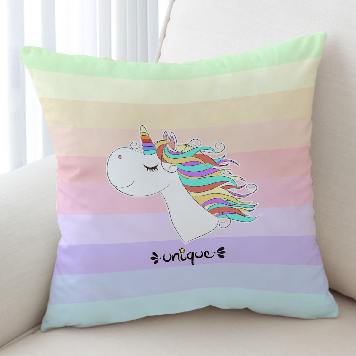 Happy Colorful Unicorn Pastel Stripes Cushion Cover