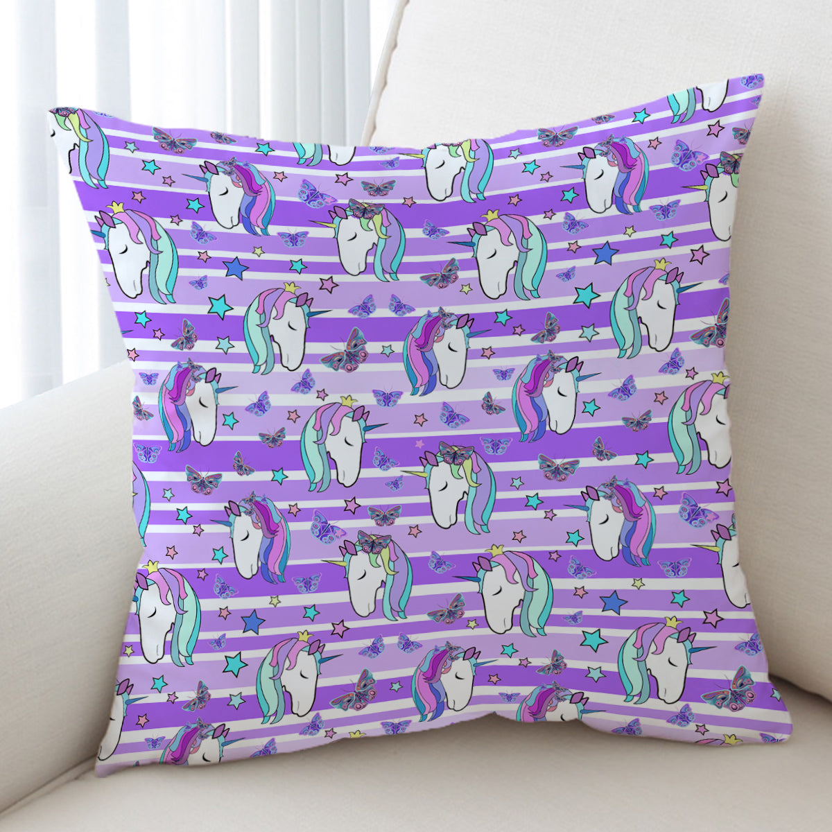 Multi Unicorn Pink Stripes Cushion Cover easily changes the look of your space at an affordable price. This decorative cushion cover has a square shape with popular sizes and impressive prints that can easily be decorated with many styles.