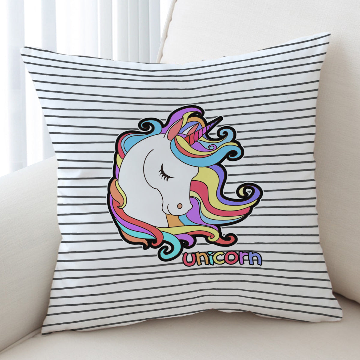 Pastel Sleeping Unicorn Head Stripes Cushion Cover easily changes the look of your space at an affordable price. This decorative cushion cover has a square shape with popular sizes and impressive prints that can easily be decorated with many styles.